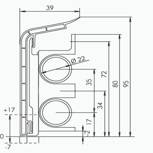 Heizrohrleiste 90mm buche dunkel, 2 Meter