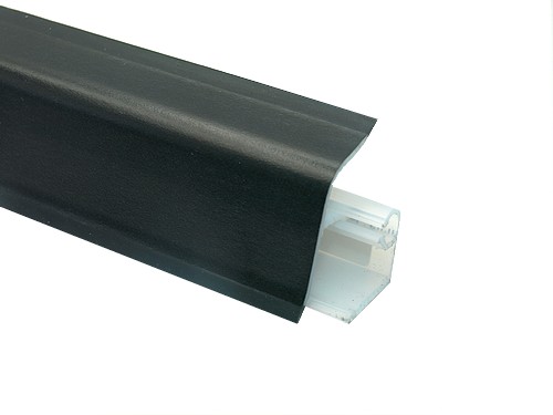 Träger- und Deckleiste sind aus Kunststoff. Die Deckleiste ist folienbeschichtet.
